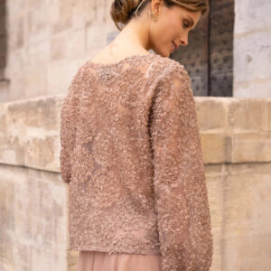 Elegantes Damen Choklate Paris” Rosettenbluse” in Taupe – Bluse mit U