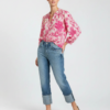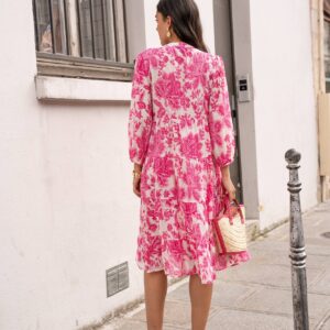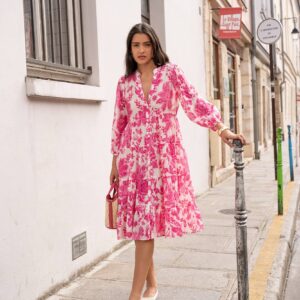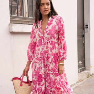 Elegantes Damen Choklate Paris Sienna Hemdblusenkleid Midilänge Florales Hibiskusmuster Pink